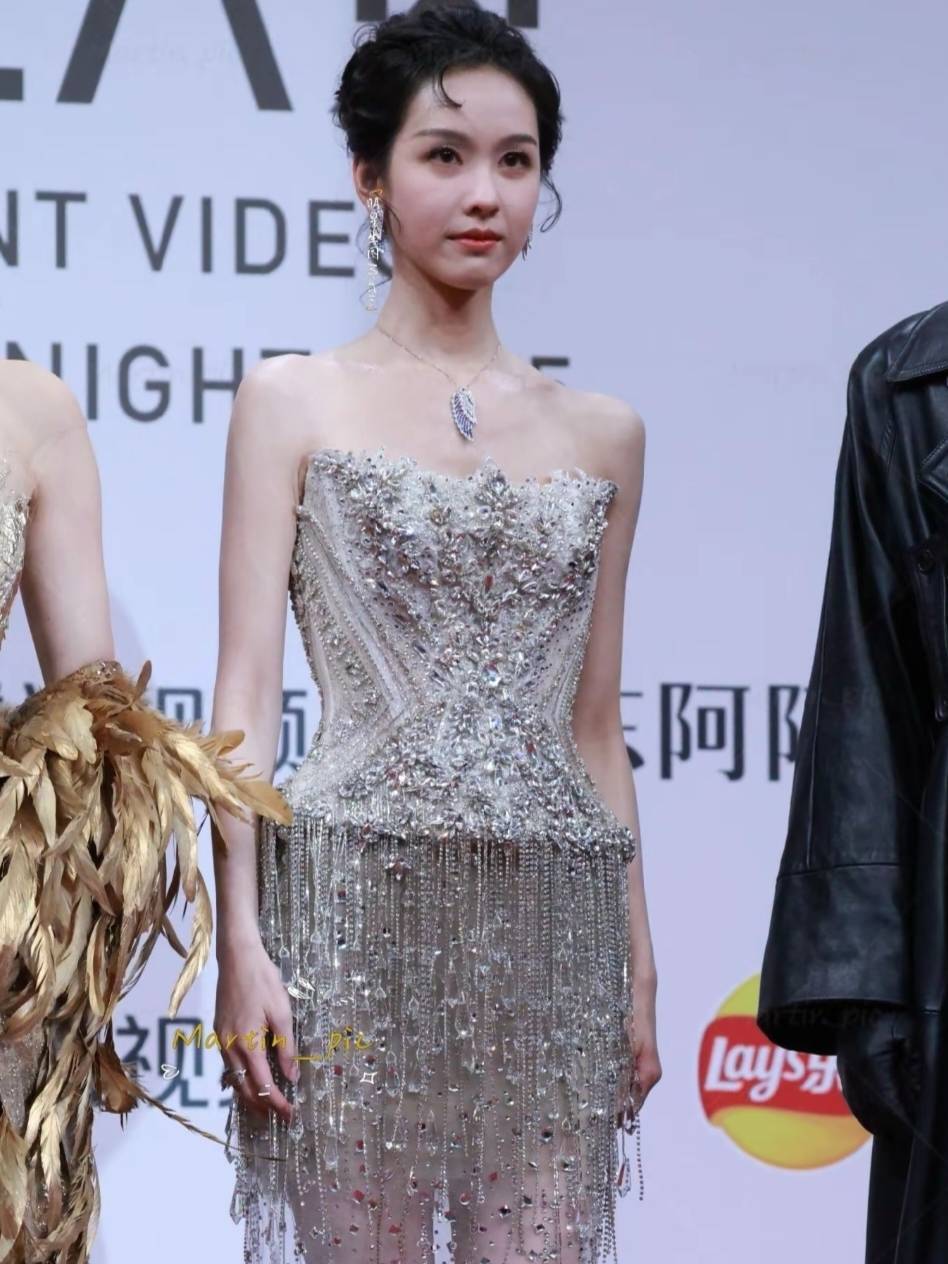 《雁回时》里她穿古装戏服看不出来有什么异样,如今红毯上一穿抹胸礼服就暴露无遗,锁骨和胸骨都在皮下若隐若现。